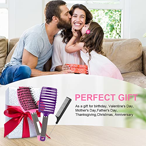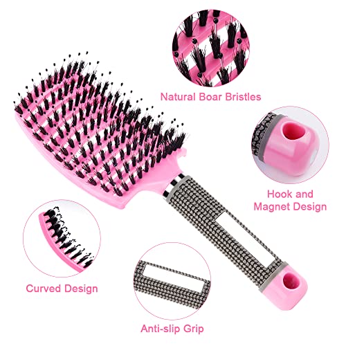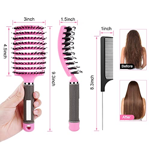 - 【ERGONOMIC HANDLE】The hairbrush handle is made of rubber, textured non-slip design, comfortable to hold, not easy to fall off, very convenient to use. Includes 2 Boar Bristle Brushes + 1 Pintail Comb for a variety of usage needs.