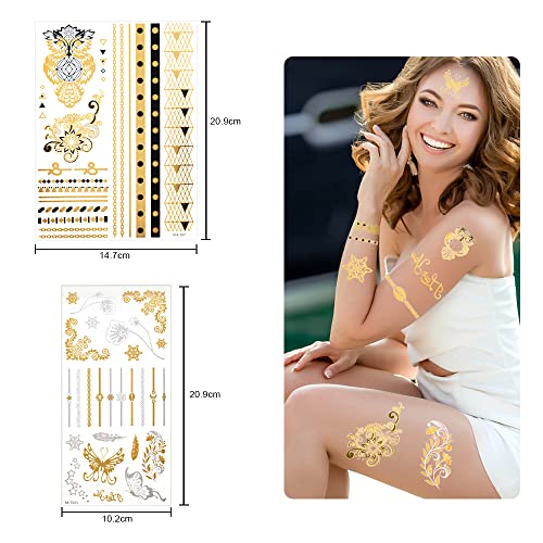 - ✮【Good Quality】These metallic flash temporary tattoos will last for a few days and maintain their shiny appearance.
