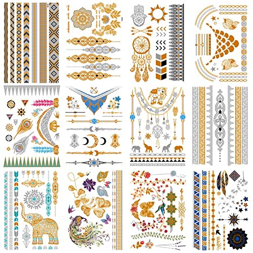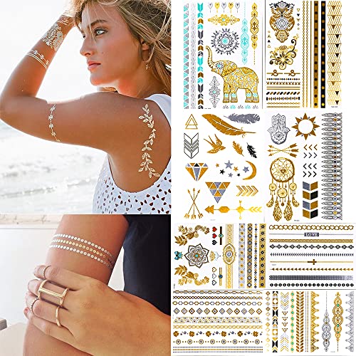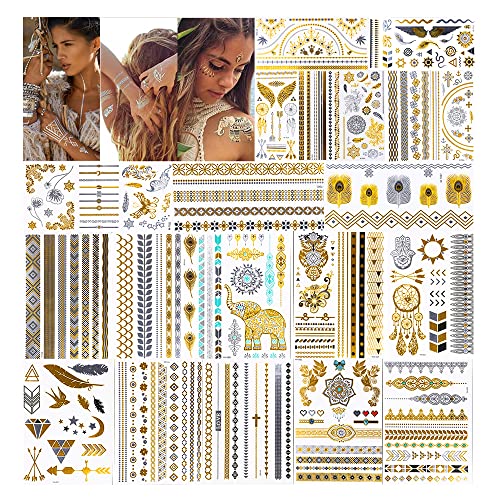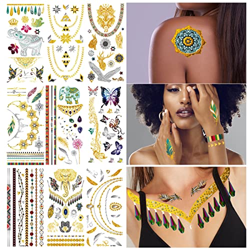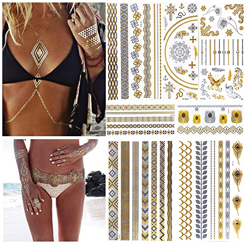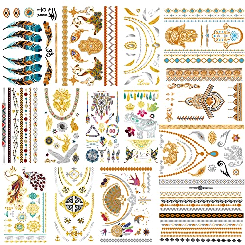 - ✮【200 Fashion Designs】With more than 200 flash designs, includes feathers, infinity signs, necklaces, bracelets, Hawaiian tribal signs, butterfly, etc. Matching the vivid images displayed, you will have a variety of new and amazing metal temporary tattoos.