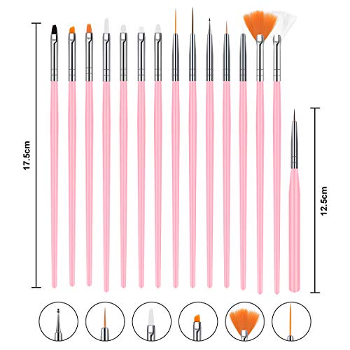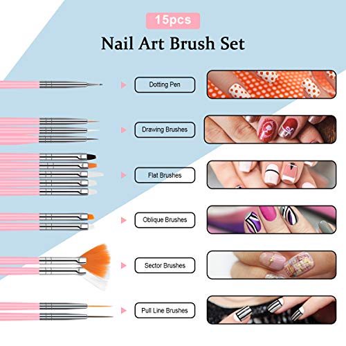 - ★【Professional Nail Painting Kit】15 pcs nail brushes come with line pen brushes, drawing pen brushes, sector pen brushes and nail art tips builder brush from different shape to size, easily draw any beautiful 3D painting.