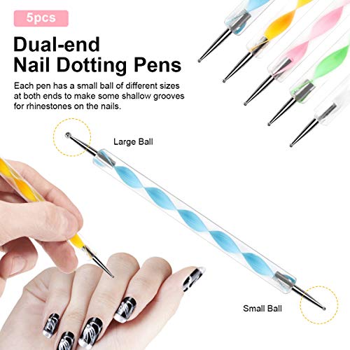 - ★【Exquisite Dotting Tools Set】5 pcs nail dotting pens are double-ended, one side is the same diameter-1.5mm, another side is different from 1mm, 1.5mm, 2mm, 2.5mm to 3mm, help draw dots pattern and adjust nail rhinestones to anywhere.