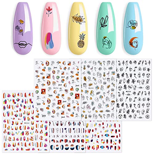 - 【PERFECT NAIL ART STICKER SET】6 Nail Art Stickers are perfect fashion accessories, lots of different patterns for you to use and change in your daily life, nail stickers are full of sexy and elegant, all kinds of charming patterns bring you different moods.