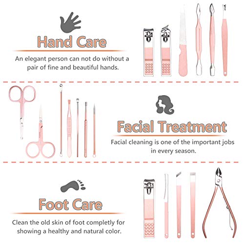 - ✦【Multipurpose】This is a multi-functional grooming kit that gives you great nail, foot, facial, ear care. Nail tools can trim and grind your nails and remove the dead skin around your nails. Eyebrow scissors and eyebrow tweezers can trim your eyebrows to make your eyebrows more beautiful.