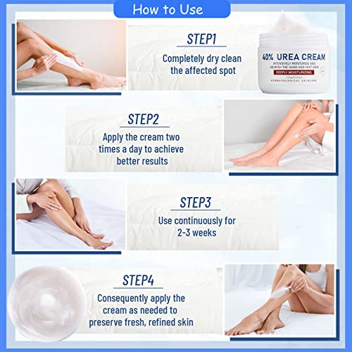- 【Fast-absorbing 】The foot cream is mineral oil free, ensuring every drop of oil works to enrich and moisturise skin (where mineral oil would just sit on the surface). When apply urea cream,your skin absorbs it quickly without sticking to your hands,40% urea cream is a Fast-absorbing Moisturiser.