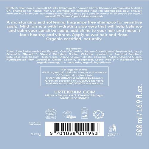 Urtekram - Urtekram Fragrance Free Sensitive Scalp Shampoo - 500ml Urtekram - Urtekram Fragrance Free Sensitive Scalp Shampoo - 500ml