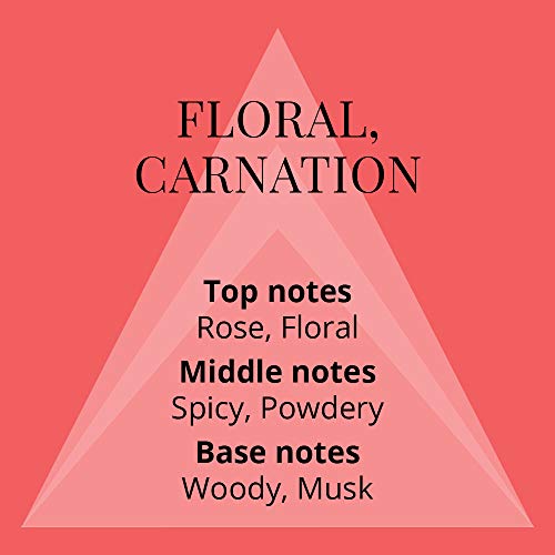 - WARM FRESH & FLORAL - Rose, carnation and violet top notes and a rich, spicy powdery heart lift tenacious base notes of vanilla, sandalwood and patchouli