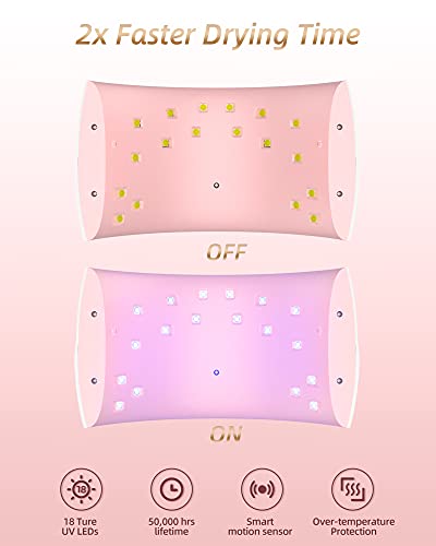 - LIGHT WEIGHT AND MUTIFUNCTIONAL: SUNUV SUN9X Plus with 18 pieces durable 50000hrs lifetime LED beads. Fashion appearance and open design make it easier to cure 5 fingernails or toenails at the same time.