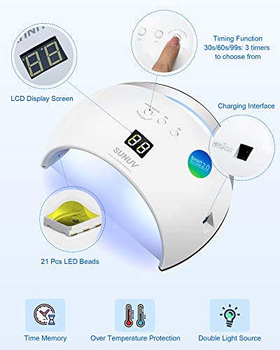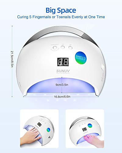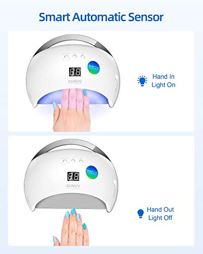 - 【Safe & Never Hurt Your Hands】With smart over-temperature protection, This uv nail light relieves burning sensation, makes you comfortable during the curing time. No more dizziness or uncomfortable eyes with its white LED light.