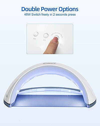 - 【Advanced Curing Techology】Double Power button offers cure speeds up to twice as fast as standard UV LED nail lamp—a full cure takes just 30% of traditional nail lamp.