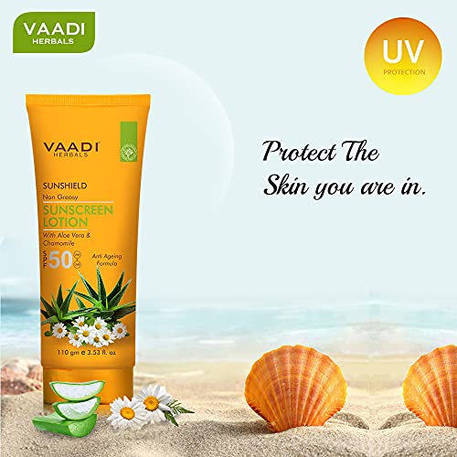 - This innovative formulation using Aloe Vera is an excellent sun shield that is non greasy and lasts long.