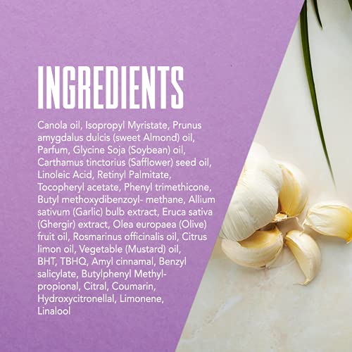 - Infused with pure garlic oil: Garlic is rich in essential nutrients like sulphur, vitamins B6, C, manganese, selenium, amongst various others – all of which promote hair health. It is known for its natural antimicrobial and anti-fungal properties, which contribute to a healthy scalp. Consistent use may help you fight hair loss and stimulate hair growth.