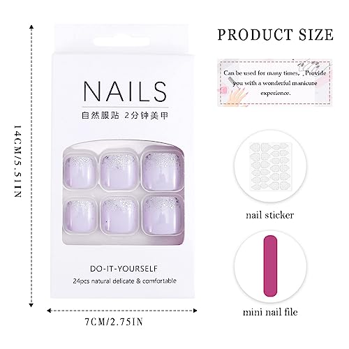 Home Nail Care Vatocu French False Toenails Pink Glitter Press on Toe Nails Pure Bling Fake Toenails Glossy Acrylic Stick on Foot Nails for Women and Girls (24p