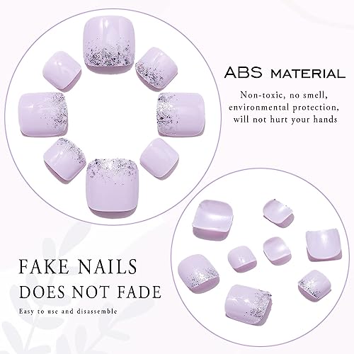 Vatocu French False Toenails Pink Glitter Press on Toe Nails Pure Bling Fake Toenails Glossy Acrylic Stick on Foot Nails for Women and Girls (24p