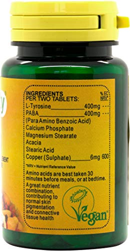 • Tyro Tan combines Tyrosine with PABA and Copper which may also help to promote a healthy, golden ta