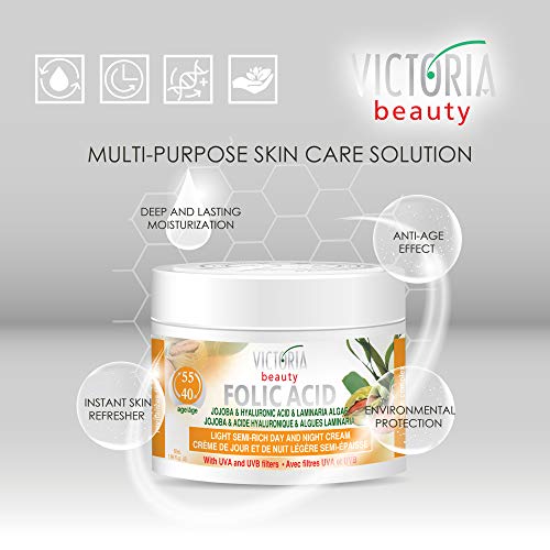 Victoria Beauty Anti Wrinkle Face Cream with Hyaluronic Acid, Vitamin E, C, B5, Jojoba Oil, Niacinamide and Folic Acid - Anti-Aging Day and Night
