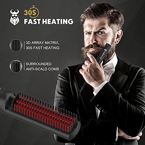 VIKICON Beard Straightener, 30s Quick Heated Beard Brush, Mini Heating Straightening Comb for Men, Ionic/Lightweight/Fast/Anti-scalding Hot Hair