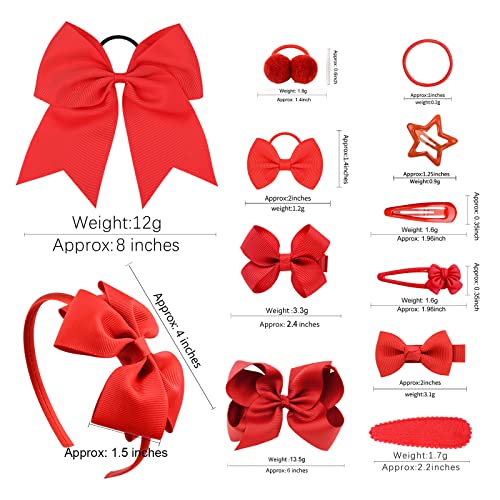 - Red Hair Accessories Set: Includes 1pcs large cheer bow, 1pcs bow headband, 14pcs hair ties and 19pcs hair clips, 35pcs in total, sufficient to meet your needs to make your hairstyle unique.