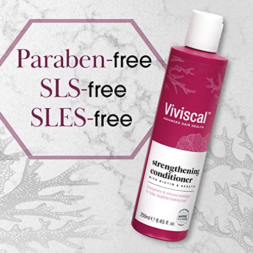 - Viviscal Strengthening Hair Conditioner contains hair building blocks Biotin and Keratin, fortified with Marine Collagen and Seaweed extract, to deliver nourishing hydration without weighing hair down