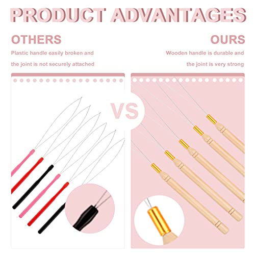 Vlasy 5PCS Hair Extension Loop Needle Threader Pulling Hook Tools Micro Loop Nano Beads Device Hair Extension Threader for Hair or Feather Extens
