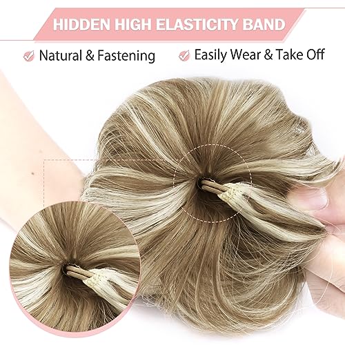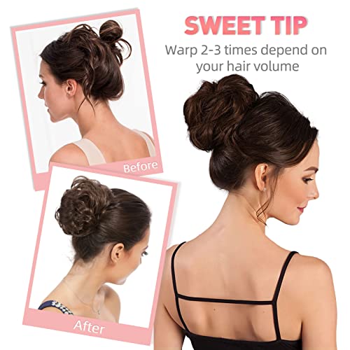 Vlasy Messy Bun Hair Piece for Women,Curly Wavy Hair Scrunchies Bun Extensions Hairpieces,Synthetic Hair Chignons Accessories Updo for Girls(18/2