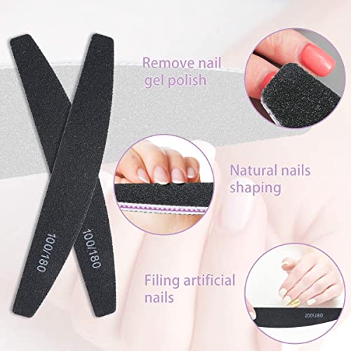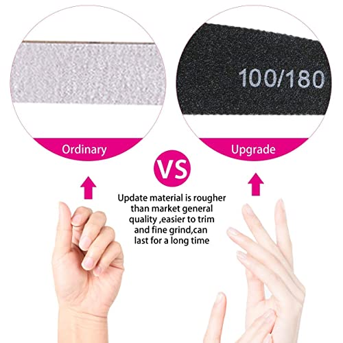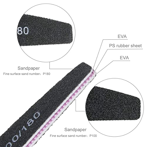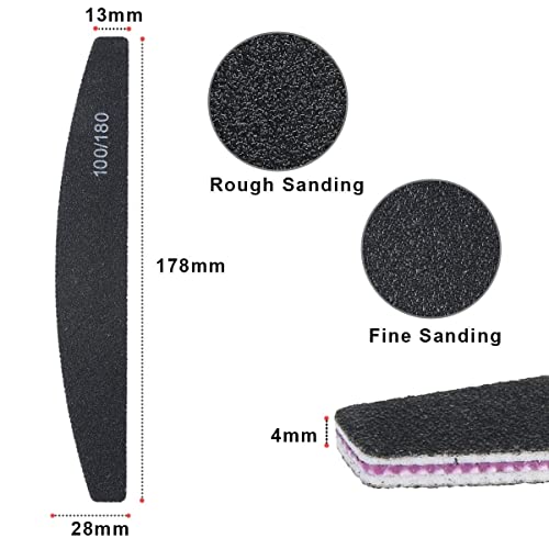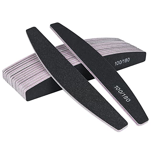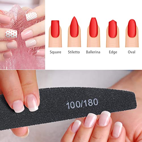 VSSHE Nail Files 100/180 grit, 16 pcs Double-Sided Emery Board Professional Nail File Set, Curved Fingernail Files, Manicure Tools for Home and S