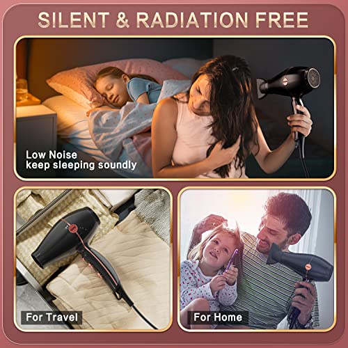 WADODO Ionic Hair Dryer, 2000W Professional Blow Dryer Fast Drying Hairdryer Travel Blowdryer, Lightweight Constant Temperature Low Noise Portabl