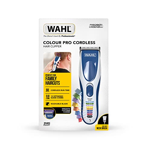 - EASY HOME HAIRCUTTING – Perfect for family haircuts, the Wahl Colour Pro Cordless features 10 innovative coloured combs that match the code on the clipper, making it easy to choose your colour and style. Suitable for buzz cut, crop, family haircuts and more