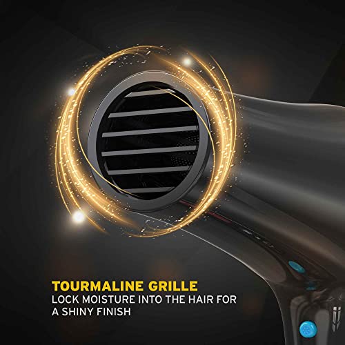- ENHANCED SHINE – Designed with a tourmaline grille that locks in moisture for smooth hair with a natural shine. The Ionic function ensures anti-frizz and delivers long lasting shine and healthier looking hair