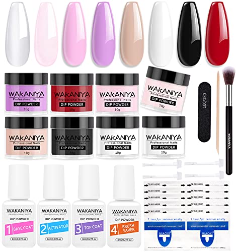 Wakaniya Dipping Powder Nail Kit Starter, 8 Colours Nude Clear White Nail Dipping Powder Set with Base Top Coat, Activator and Brush Saver Dip Po Wakaniya Dipping Powder Nail Kit Starter, 8 Colours Nude Clear White Nail Dipping Powder Set with Base Top Coat, Activator and Brush Saver Dip Po