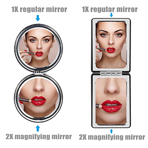 WantGor Compact Mirror, 2 Pack Makeup Mirrors Travel Black Round Portable Double-Sided Pocket Mirror for Men, Women WantGor Compact Mirror, 2 Pack Makeup Mirrors Travel Black Round Portable Double-Sided Pocket Mirror for Men, Women