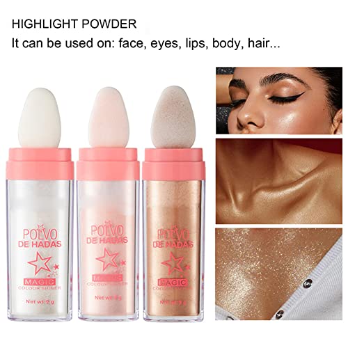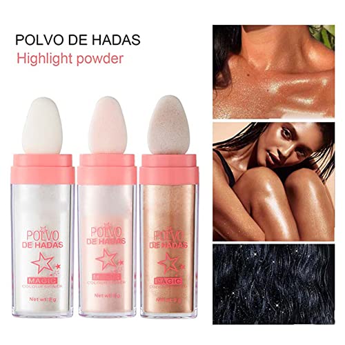 Weixinbuy Highlighter Powder Stick, Polvo De Hadas Glitter Patting Fairy Highlight Smooth Three-Dimensional Shimmer, Sparkly Natural for Face Bod