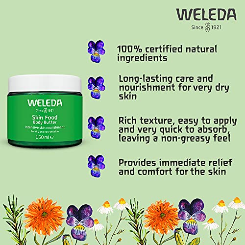 - Organic shea butter and cocoa butter leave dry skin intensely nourished