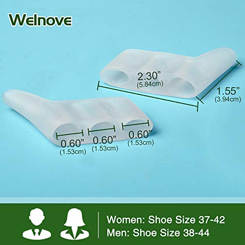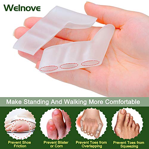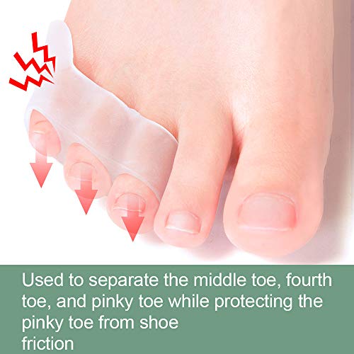 - Soft & Comfortable Material: Pinky Toe Separators made of stretchy gel silicone, it is soft and elastic, comfortable when wear pinky toe protectors with shoes.