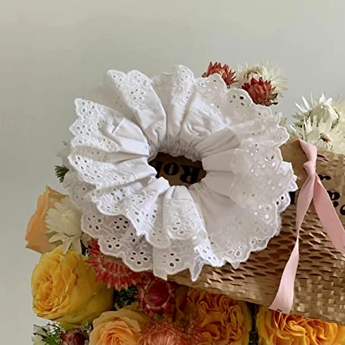 White Lace Scrunchies Large Hair Scrunchies for Women,Elastic Hair Bands Scrunchy Soft Hair Ties Ropes,Bobbles Ponytail Holders for Thick Hair Wh
