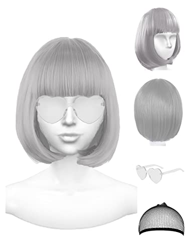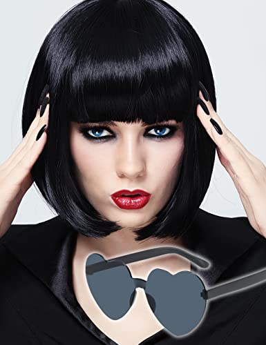 - PERFECT FOR PHOTO SHOOT - You will receive 1 x black short bob wig with bangs, 1 x black sunglasses, 1 x wig cap. Stylish black short wig set makes you to be a star during taking photos. Wear on black wig bob, post photos on social medias, people will like it