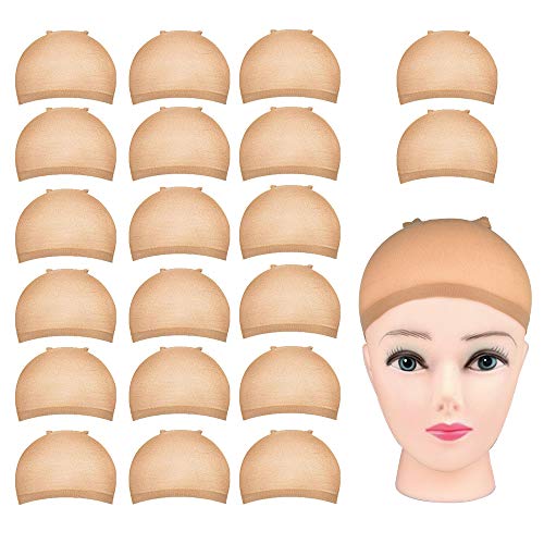 Wig Cap, MORGLES 20 Pack Stretchy Nylon Stocking Wig Cap for Women Makeup,Nude