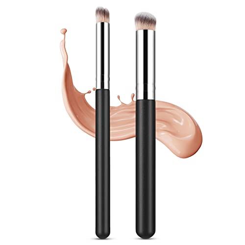 - 【Comfortable Wood Handles】The Flat concealer makeup brush have elegant handle, the bristle of the makeup brush is flat, Brush head and handle connected by aluminum ferrule, Embossed Feel, Comfortable to Hold, No Fear of Sweaty Hands,No Slide on Makeup.