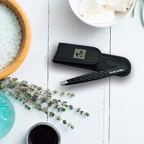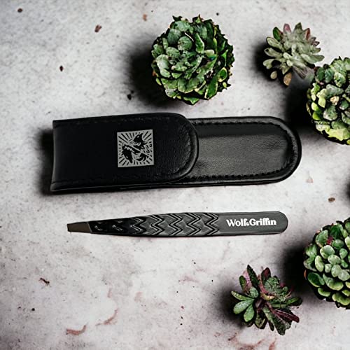 Wolf & Griffin Black Edition Ultimate Precision Tweezers with Case | Stainless Steel with Black Coating | Professional Slant Eyebrow Tweezers for Wolf & Griffin Black Edition Ultimate Precision Tweezers with Case | Stainless Steel with Black Coating | Professional Slant Eyebrow Tweezers for