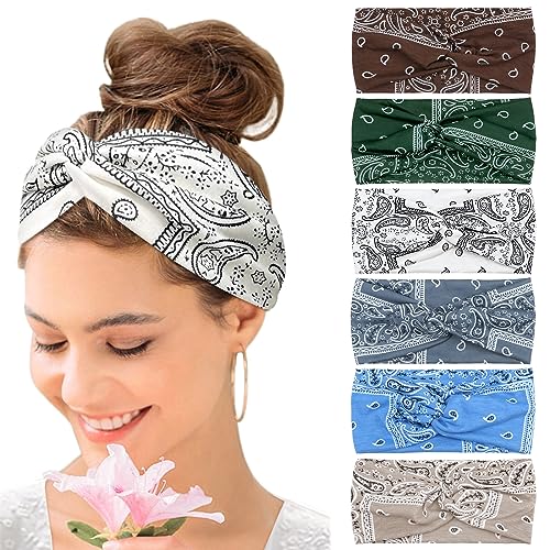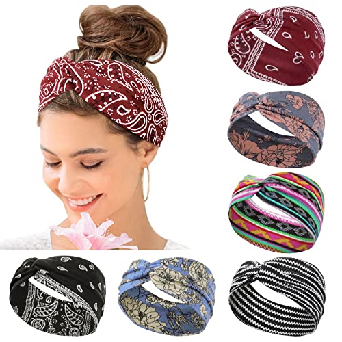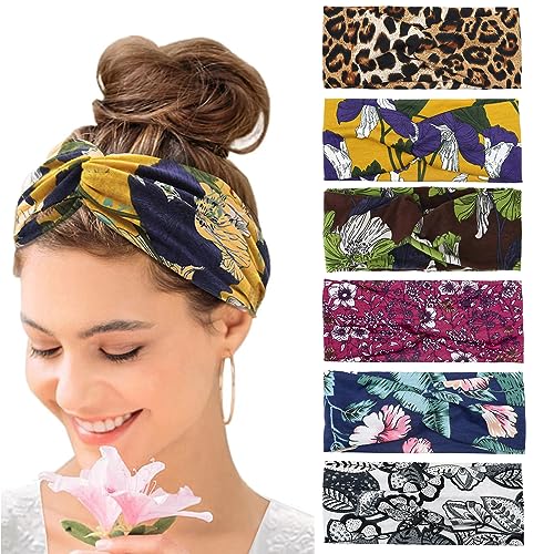 Women's Hair Bands Wide Elastic Soft 6 Pieces Summer Boho Headband Print Hair Accessories Yoga Sports Hairband Multicoloured Thin Headbands (B) Women's Hair Bands Wide Elastic Soft 6 Pieces Summer Boho Headband Print Hair Accessories Yoga Sports Hairband Multicoloured Thin Headbands (B)