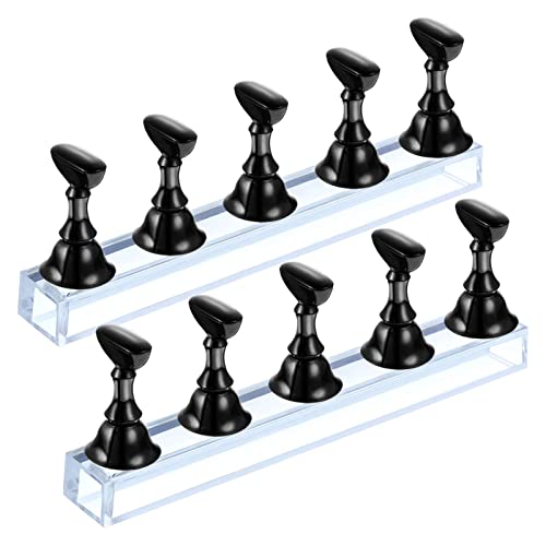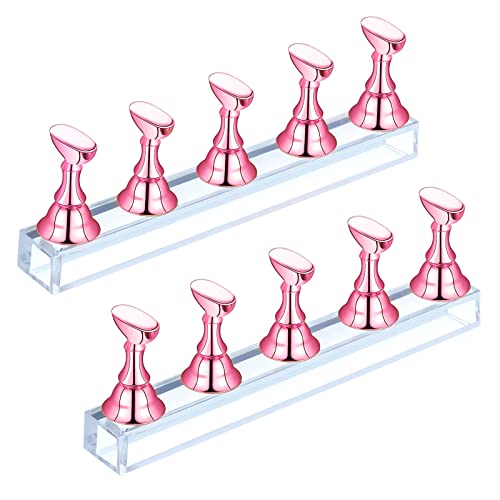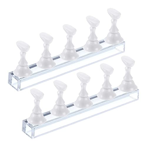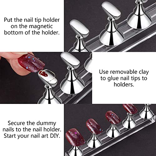 Home Nail Care WOSO 2 Sets Acrylic Nail Art Practice Stands Magnetic Nail Tips Holders Training Fingernail Display Stands (Silver)