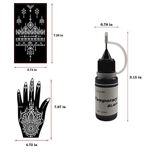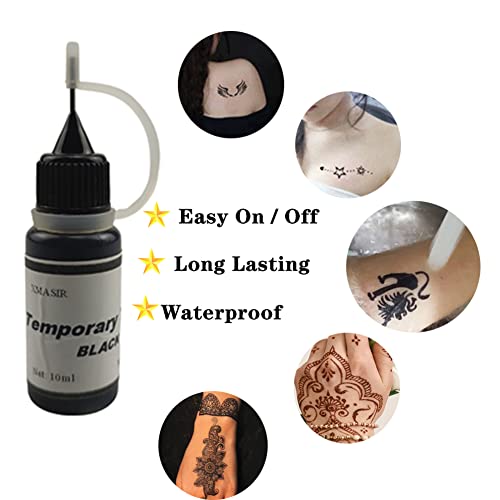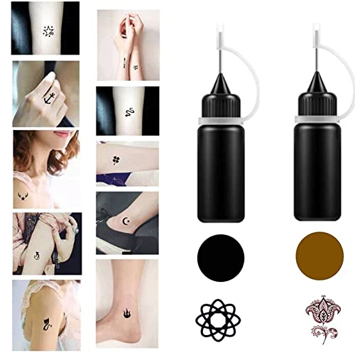 - Temporary Tattoo Ink Kit: 12 Sheets Tattoo Stencils , 3 Bottless 10ml , 2 Colors of Tattoo Ink , 1 Pair Gloves and Wet wipes 10 Roots Cotton swabs.