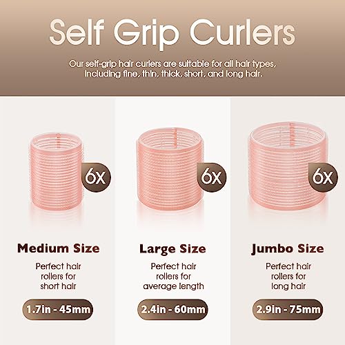 xnicx 28pcs Hair Rollers with Clips,Hair Curlers no Heat includes 18pcs Hair Rollers with 10Pcs Clips Velcro Rollers for Hair Jumbo Large Medium