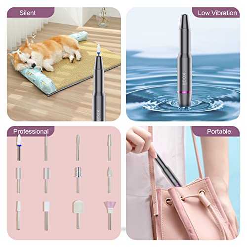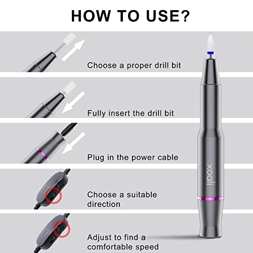 - 【Exquisite Appearance Designs】With pen-shape aluminum alloy body, Xoali professional nail drill is easy to hold, non-slip, lightweight, and scratch-resistant. This premium material can also effectively dissipate heat when used. The color of the whole machine is dark-gray, and the decoration ring is pink-purple, which makes it look elegant, thus Xoali nail file kit is also a great choice of gift.