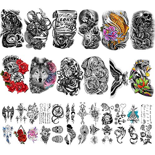 Yazhiji 36 Sheets Temporary Tattoos Stickers, 12 Sheets Fake Body Arm Chest Shoulder Tattoos for Men or Women with 24 Sheets Tiny Black Temporary Yazhiji 36 Sheets Temporary Tattoos Stickers, 12 Sheets Fake Body Arm Chest Shoulder Tattoos for Men or Women with 24 Sheets Tiny Black Temporary