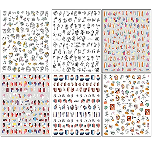 - 【Nail Stickers for Gel Nails】There are 6 sheets of graffiti fun nail stickers with various colors, abstract lady face nail decals are full of sensuality and elegance, various charming patterns bring you a different mood.