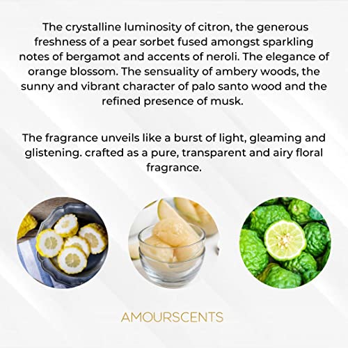 - FRESH AND SENSUAL - The crystalline luminosity of citron, the generous freshness of a pear sorbet fused amongst sparkling notes of bergamot and accents of neroli. The elegance of orange blossom. The sensuality of ambery woods, the sunny and vibrant character of palo santo wood and the refined presence of musk. The fragrance unveils like a burst of light, gleaming and glistening. crafted as a pure, transparent and airy floral fragrance.
