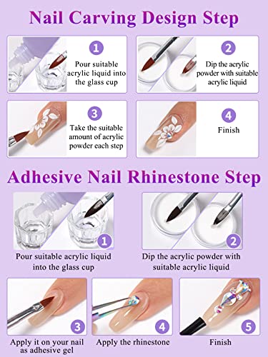 - 💖【Easy Application & Long Lasting】 Use acrylic nail brush apply onto your real nail or nail forms.Colors stay vibrant for weeks.You can use this acrylic powder set to DIY french nails,acrylic nails,nail carving,nail extensions,adhesive gel and nail decoration,etc.