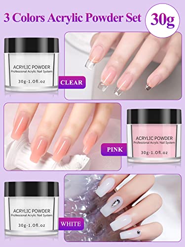 - 💖【Acrylic Nail Powder Set】This acrylic nail set comes with pink,white,clear 30g acrylic powder,5 pcs acrylic nail brush,100 pcs nail forms,5 pcs nail file,glass cup.The acrylic nail kit has all the tools you need for DIY nail art designs.Helping you get your nails done easy,quick,long-lasting.