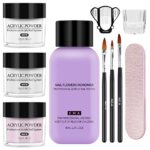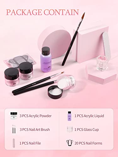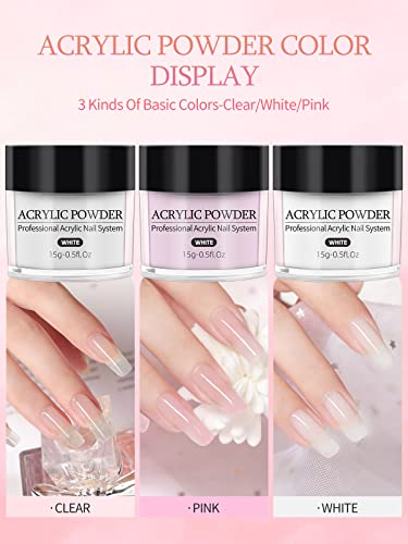 - 🌷【Acrylic Nail Powder Set】This acrylic nail set comes with pink,white,clear 15g acrylic powder,nail file,glass cup,acrylic nail brush.The acrylic nail kit has all the tools you need for DIY nail art designs.Helping you get your nails done easy,quick,long-lasting.