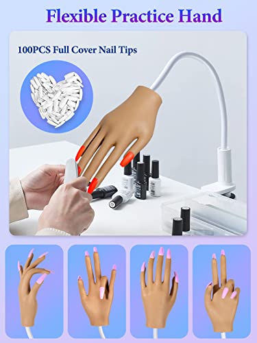 Yokilly Practice Hand for Acrylic Nails,100PCS False Nails Flexible Nail Training Hand,Acrylic Powder Nail Art Set,Professional Nail Practice Han